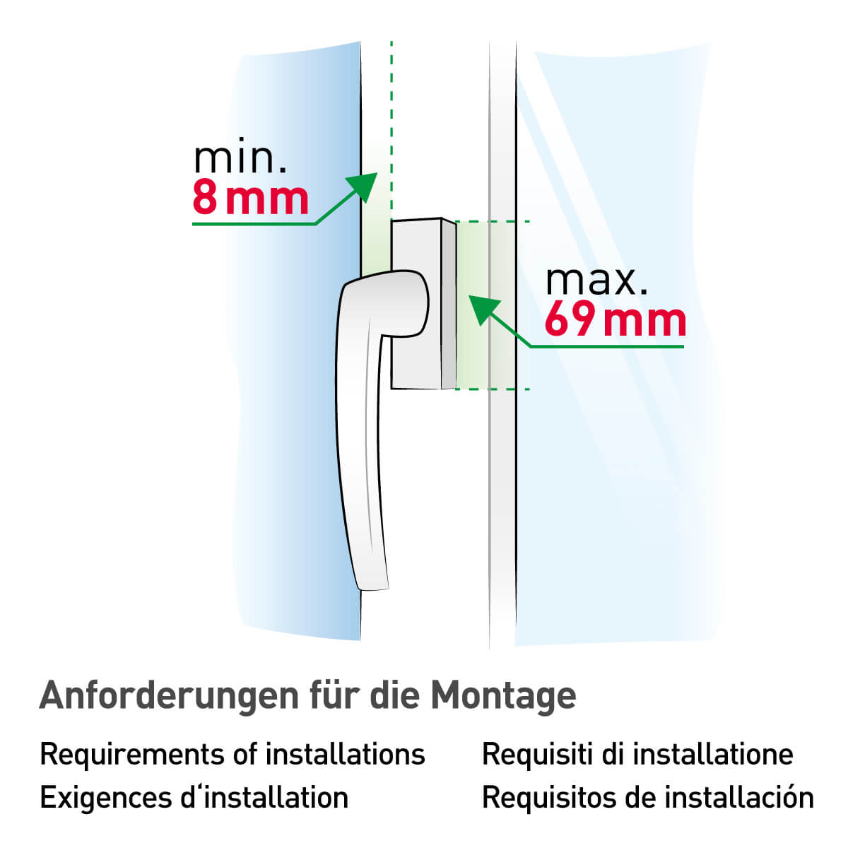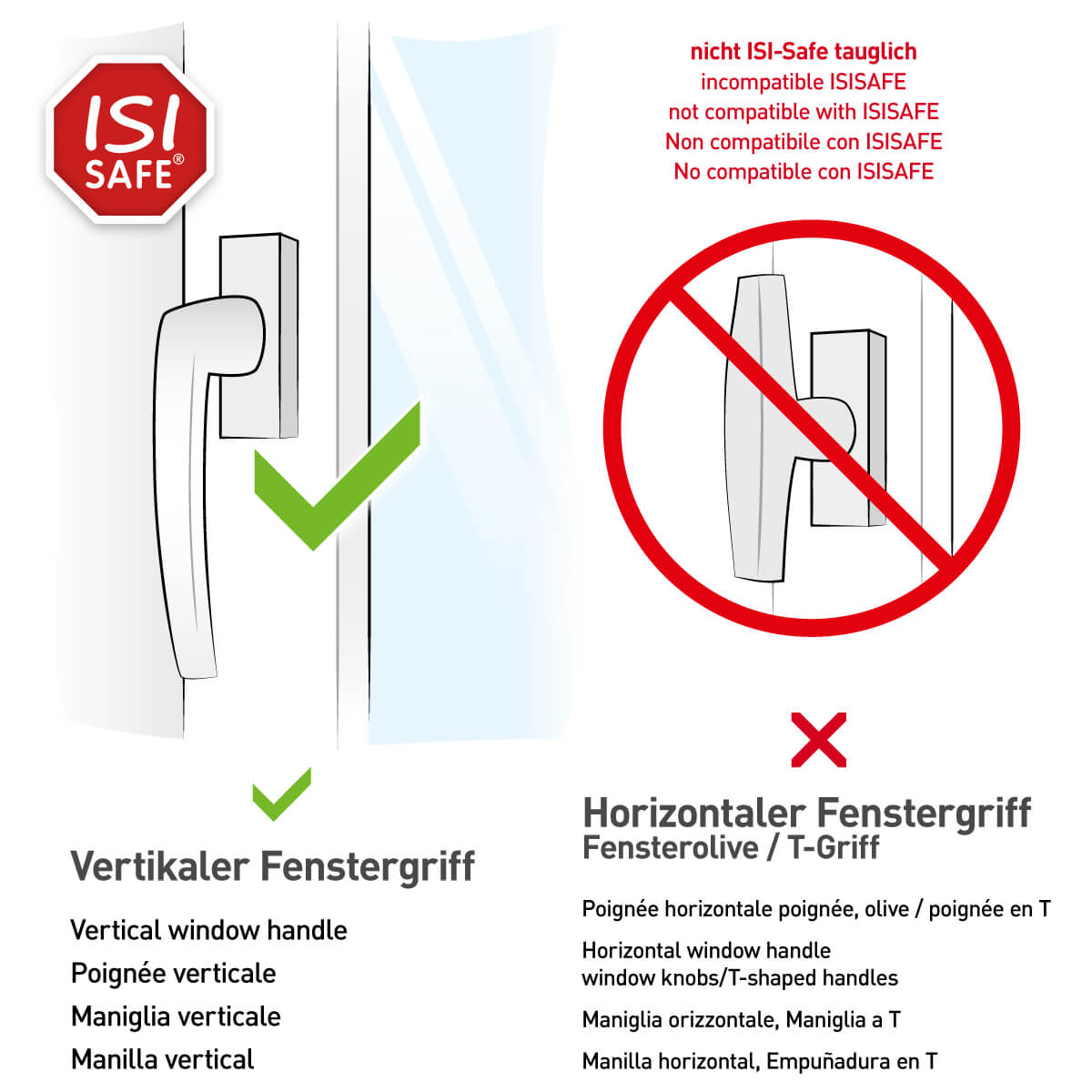 ISI SAFE kann ausschließlich bei vertikalen Fenster- und Türgriffen verwendet werden.